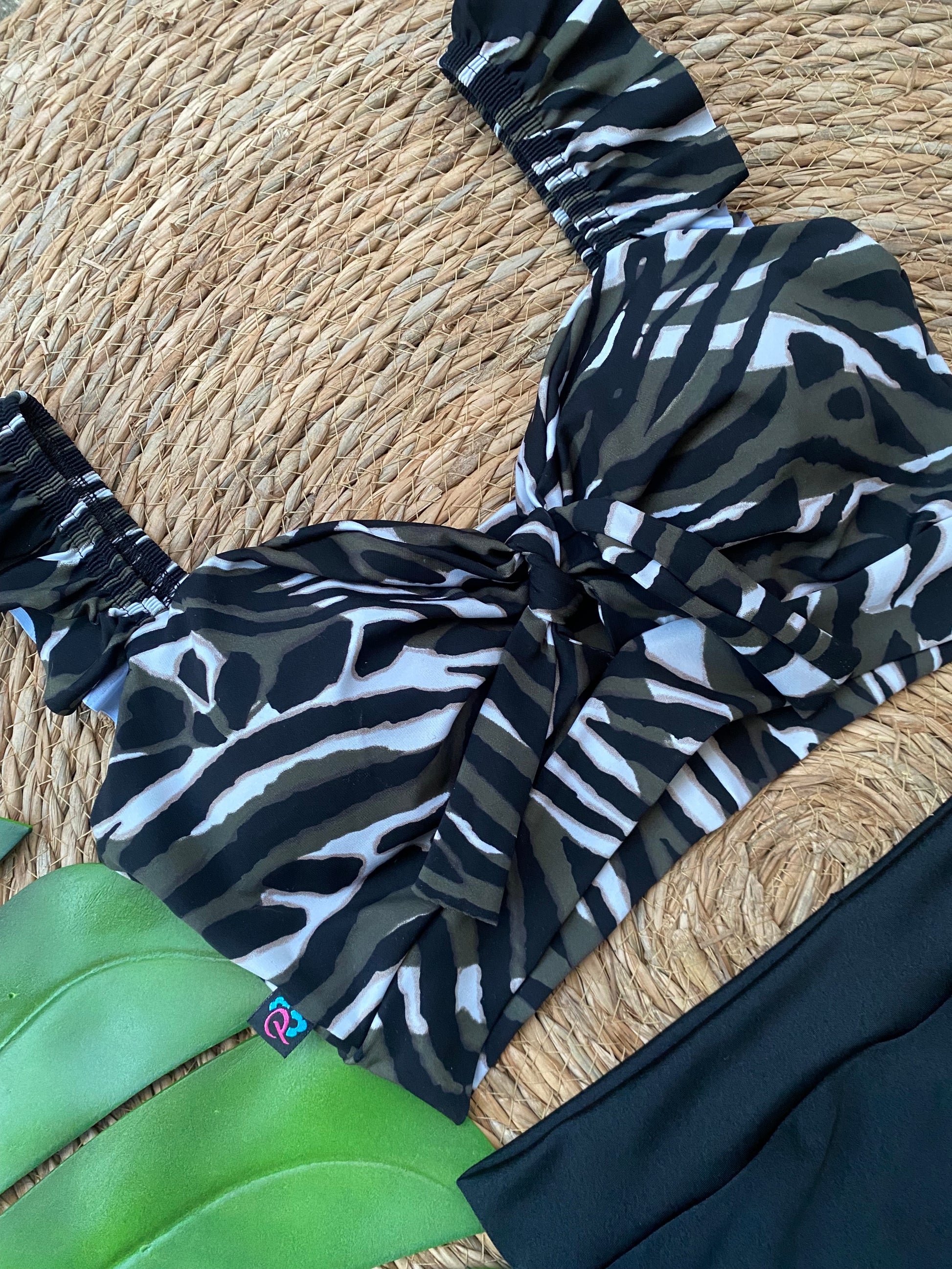 Top lazo pabilo vuelito animal print mimetizado (incluye almohadillas )