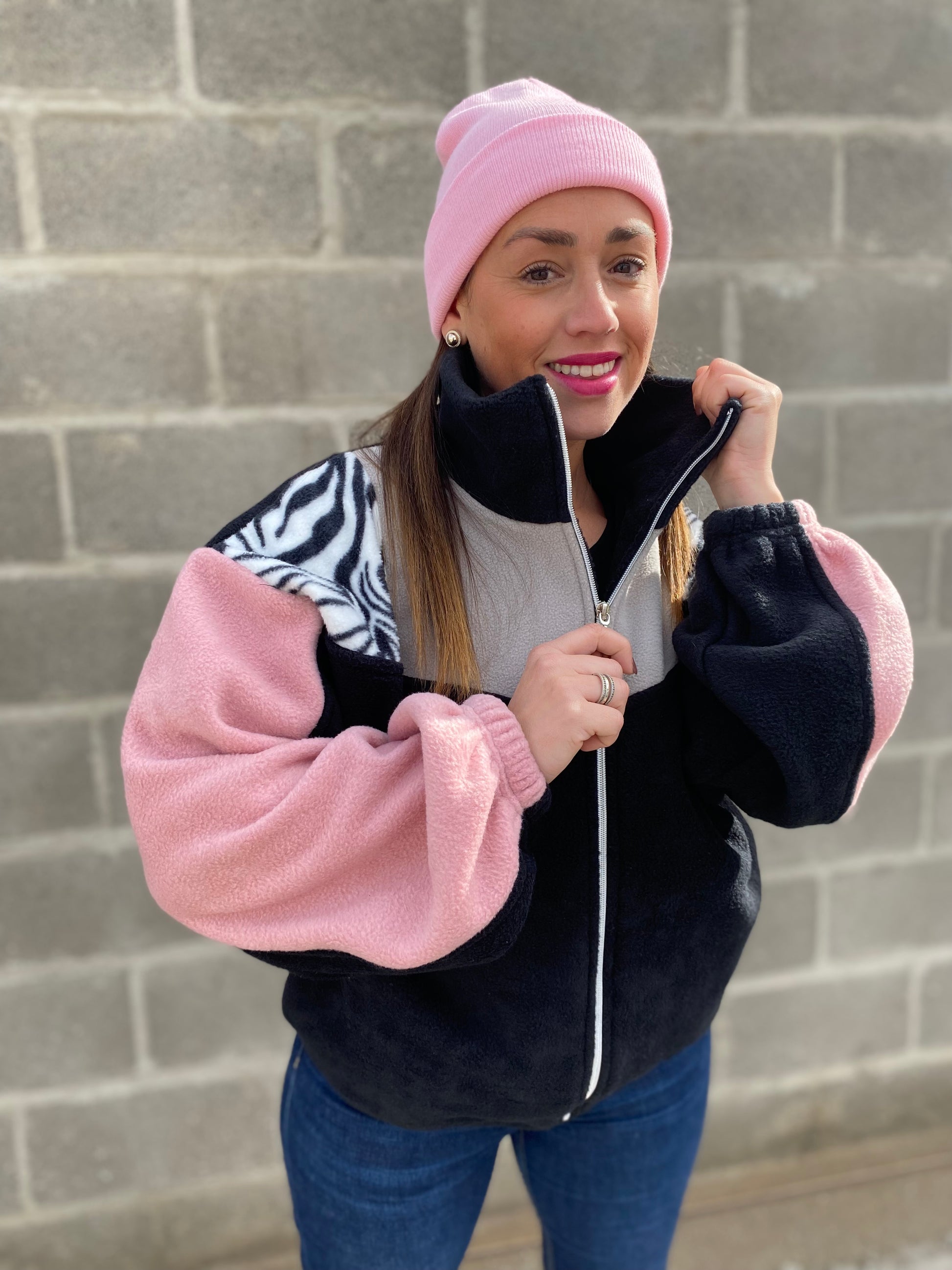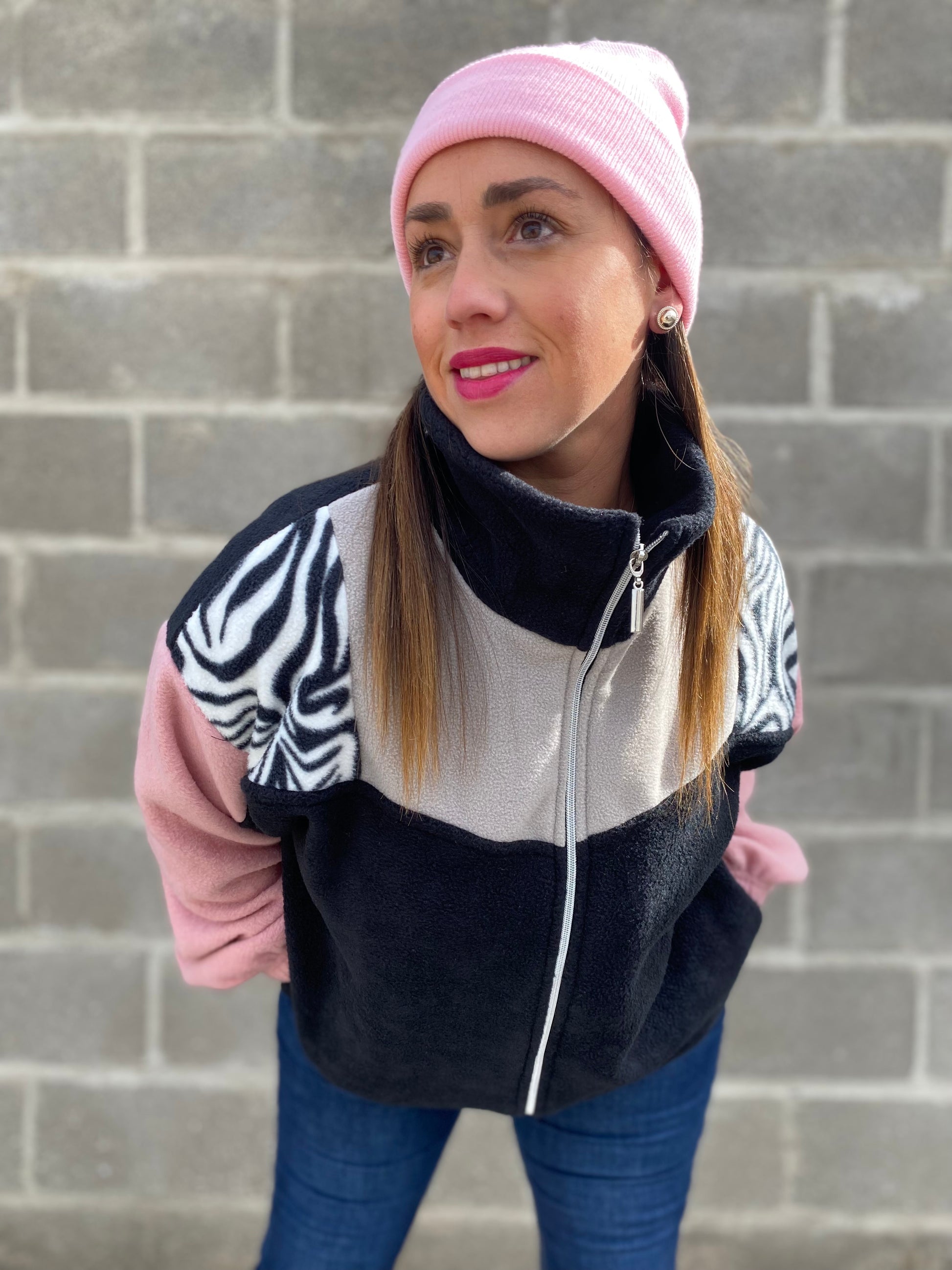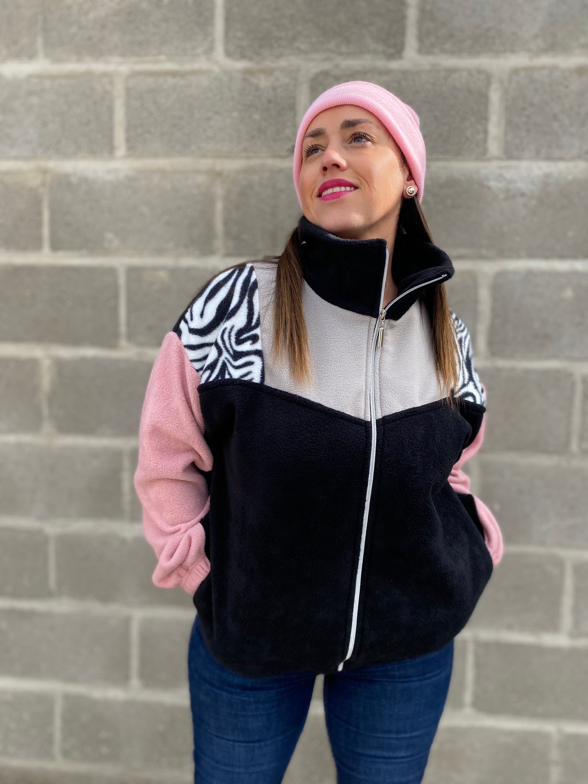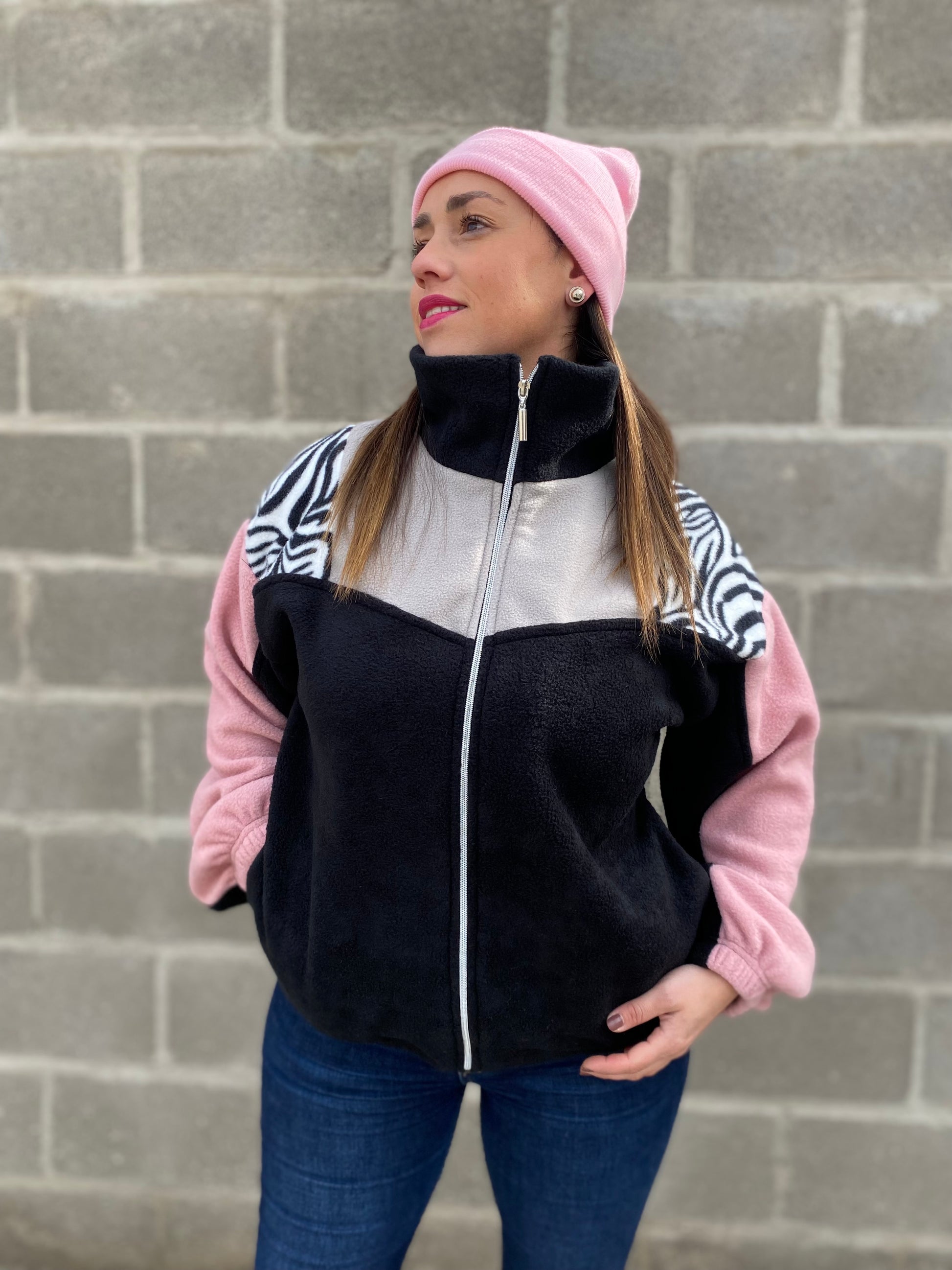 Modelo oversize fabricado en polar con cierre completo y bolsillos